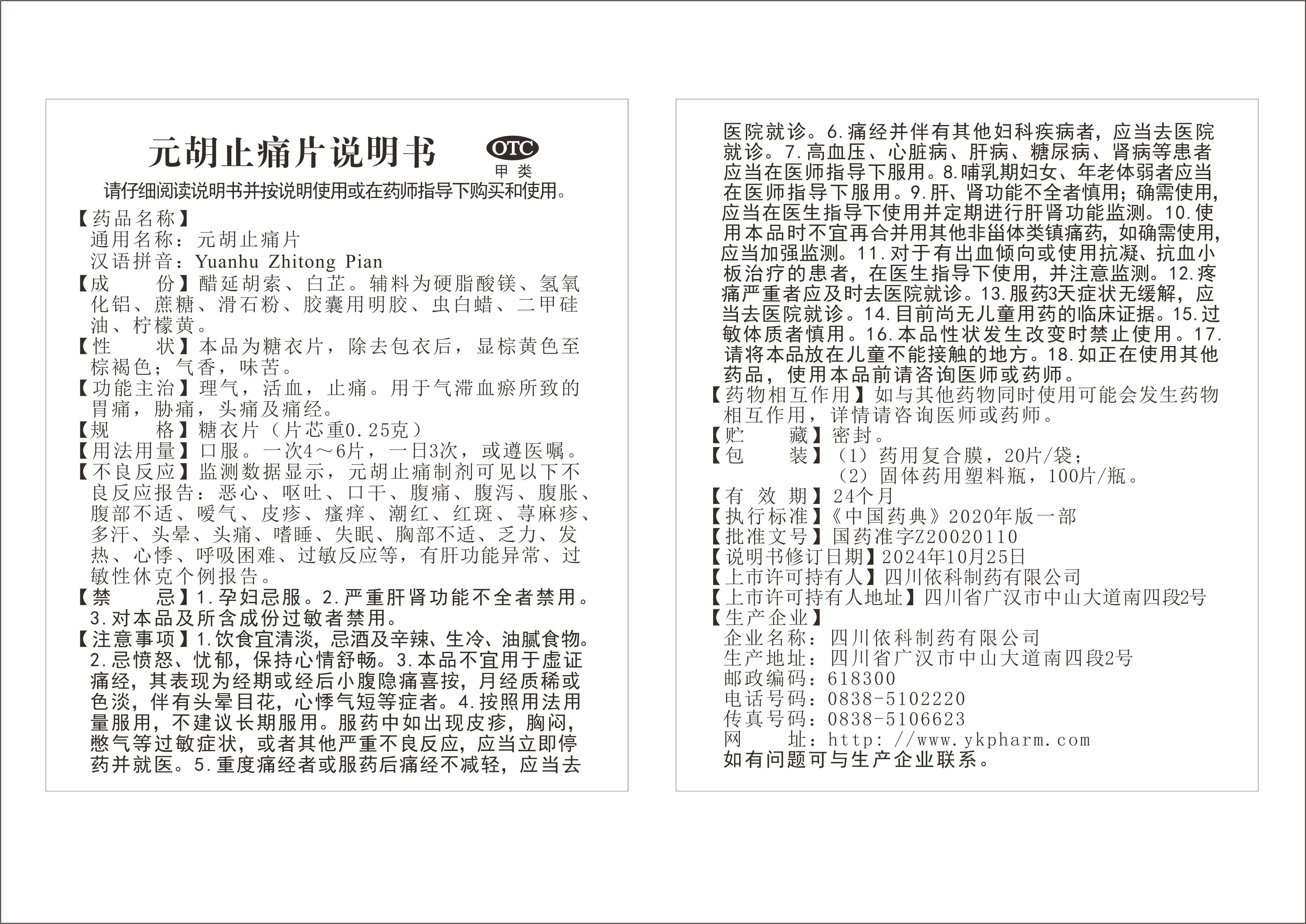 我公司元胡止痛片[批準文號:國藥準字Z20020110,規格:糖衣片(片芯重0.25克)]按照“國家藥監局關于修訂元胡止痛制劑說明書的公告(2024年第40號)”要求,對“不良反應、禁忌和注事項”內容進行了修訂,并于2024年5月7日經四川省藥品監督管理局備案通過。現將修訂后的具體內容告知如下,以便使用者了解和查詢: